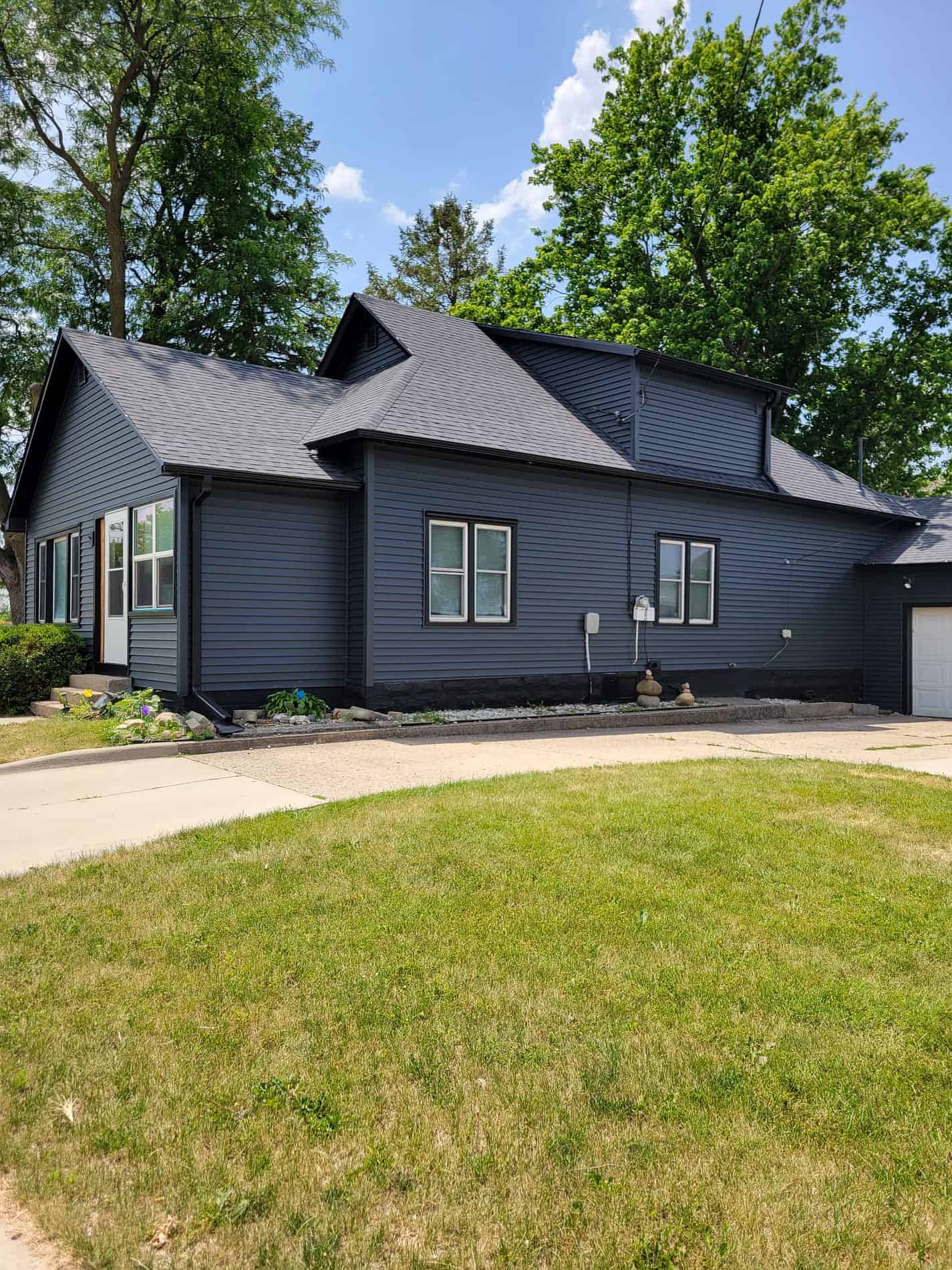 We recently completed a stunning full exterior renovation for a homeowner in Collins, Iowa—and the transformation speaks for itself. This project features a clean, modern look with Morie Black shingles, matching black window trim, and black seamless gutters. We wrapped it all together with custom Brunswick siding, delivering a bold, cohesive style that dramatically enhances the home’s curb appeal.